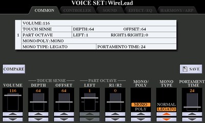 Newly implemented Half-bar fill-in and Mono Legato functions expand the variation of your performance. Live control settings can be immediately recalled from Registration Memory.