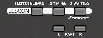 The lesson function offers a total of nine stages—three for the left hand, three for the right, and three for both hands, helping beginning players to practice the songs stored in the instrument. There's a scoring function that makes it fun to practice and improve, and a "Waiting" function that adjusts the tempo to the person playing, pausing the accompaniment until the correct note is played.