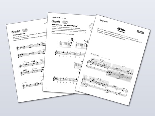 "Keys to Success" is based on teaching techniques shared with Yamaha over many years. You can select just the key phrases of the Song—the ones you like most or need to work on—and practice them one by one. This lesson is ideal for beginning players.