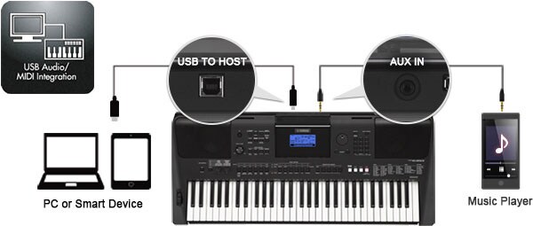 The PSR-E453 features audio transfer through the USB TO HOST terminal*. You can record your performance to your computer or smart device.