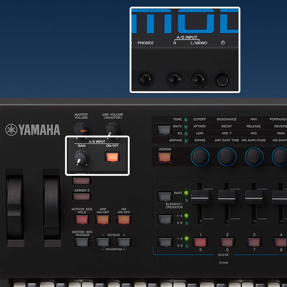 A stereo A/D input allows you to bring external sources like analog synthesizers, vocals and other instruments into the MODX+ motion control system. Which means MODX+ control goes well beyond simple onboard effect processing. Control individual parameters with the physical controls or have MODX+ provide “invisible hands” using Motion Control. Add the Vocoder, Envelope Follower and Auto Beat Sync and it’s like the A/D input on MODX+ becomes an instrument unto itself.