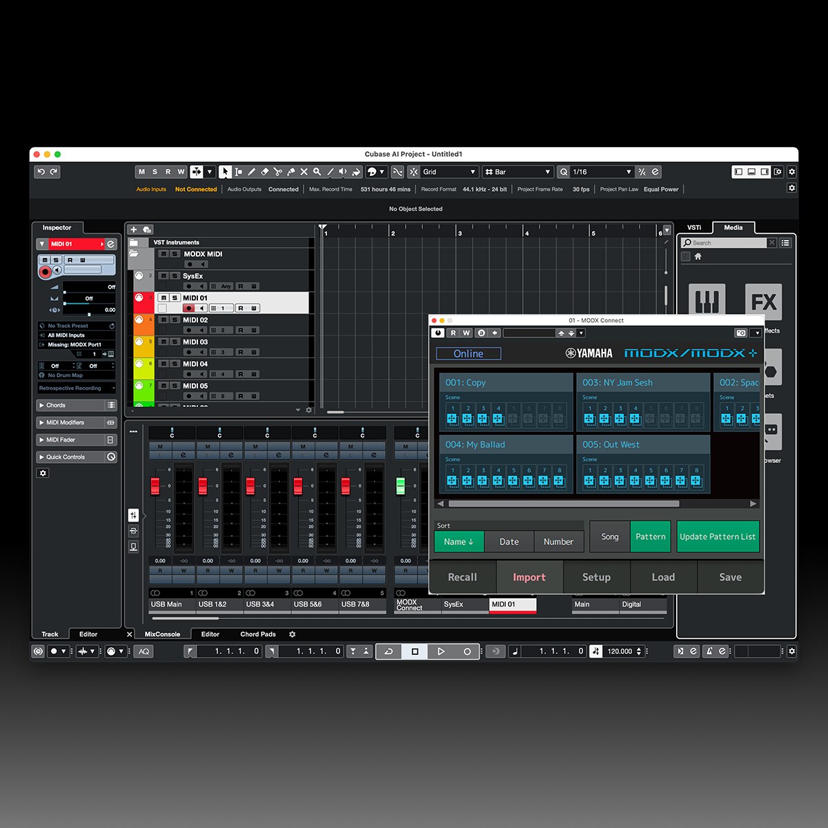 MODX+ Connect, based on Steinberg’s VST3 technology, works as a VST3 plug-in with the Cubase series. The MODX+ Connect also works as the same way as other VST instrument software, allowing you to save the edited settings of the MODX+, or use them for another project.