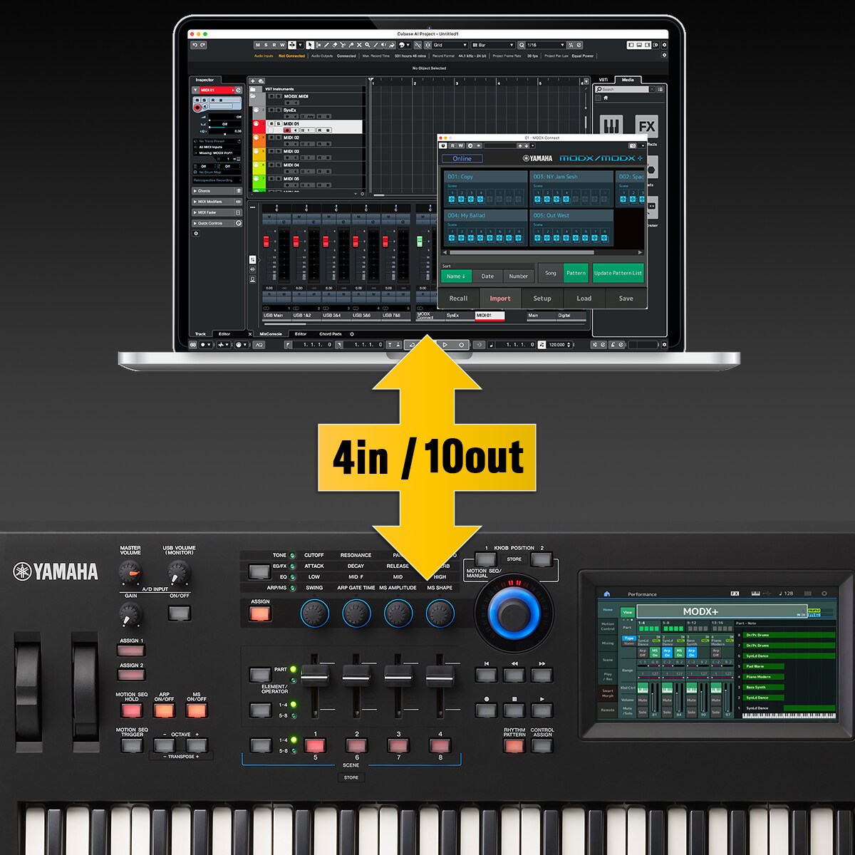 As expected for modern computer-based music production, MODX+ features a professional 4-in/10-out, multi-channel USB audio interface. Coupled with two A/D inputs, MODX+ is a perfect centerpiece for any professional recording studio or live computer rig.