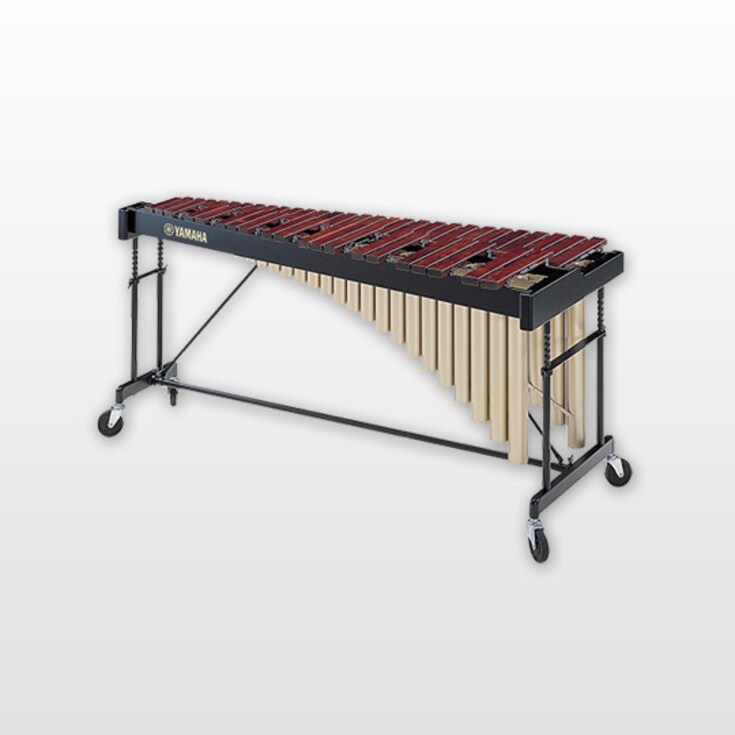 4 octave Rosewood marimba with C28-C76 range, three-position resonator slots, height adjustable frame, dual angle supports and horizontal leg supports.