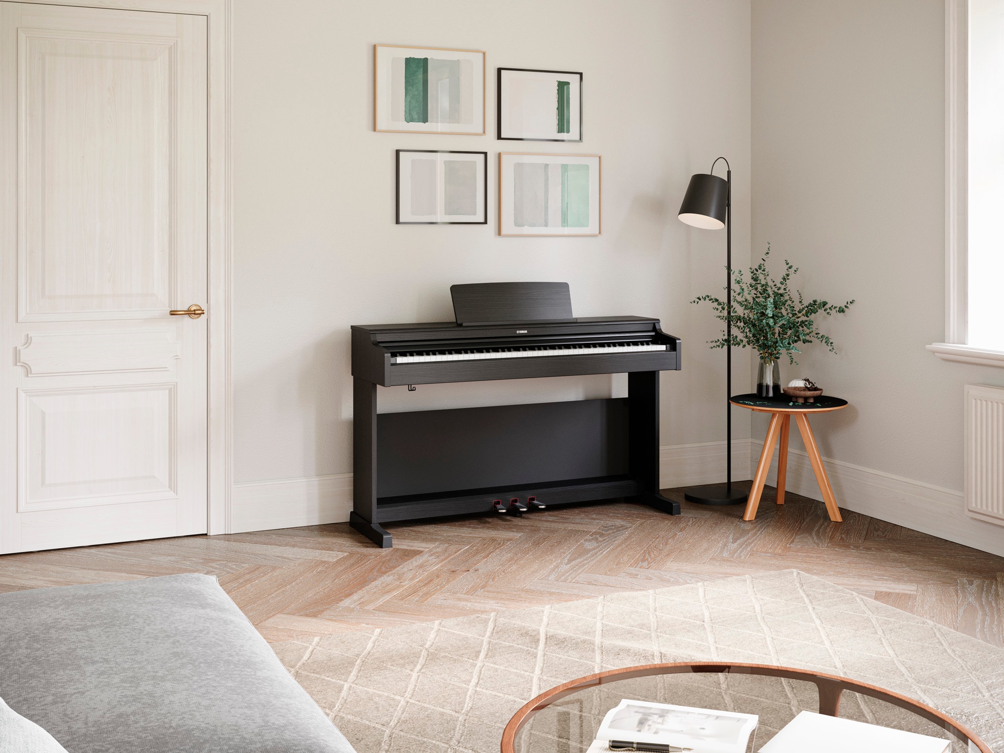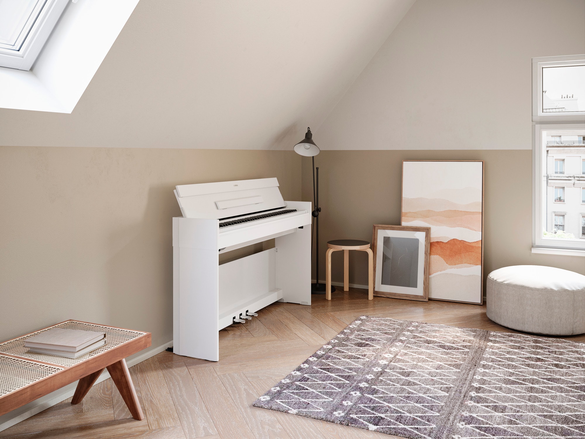 Standard size, 88-key model of the ARIUS digital piano featuring weighted keyboard. With Yamaha's CFX concert grand piano sound as a built-in Voice, experience a luxuriously expressive playing feel with the GH3 keyboard. Includes newly equipped ear-friendly functions, and compatibility with Yamaha’s Smart Pianist app.
