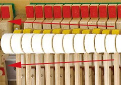 Counterweights are embedded in the keys of a grand piano to balance the weight of the hammers and offer more precise control when playing delicately at low volumes. The Clavinova features carefully-adjusted counterweights for improved playability when playing pianissimo and better key return in rapid passages. The keyboard of the Clavinova has been fine-tuned to offer optimal balance, emphasizing its superb playability and grand piano response.